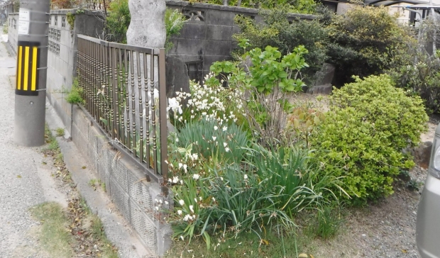 ブロック塀を押し出してしまい今にも倒れそう・・・。