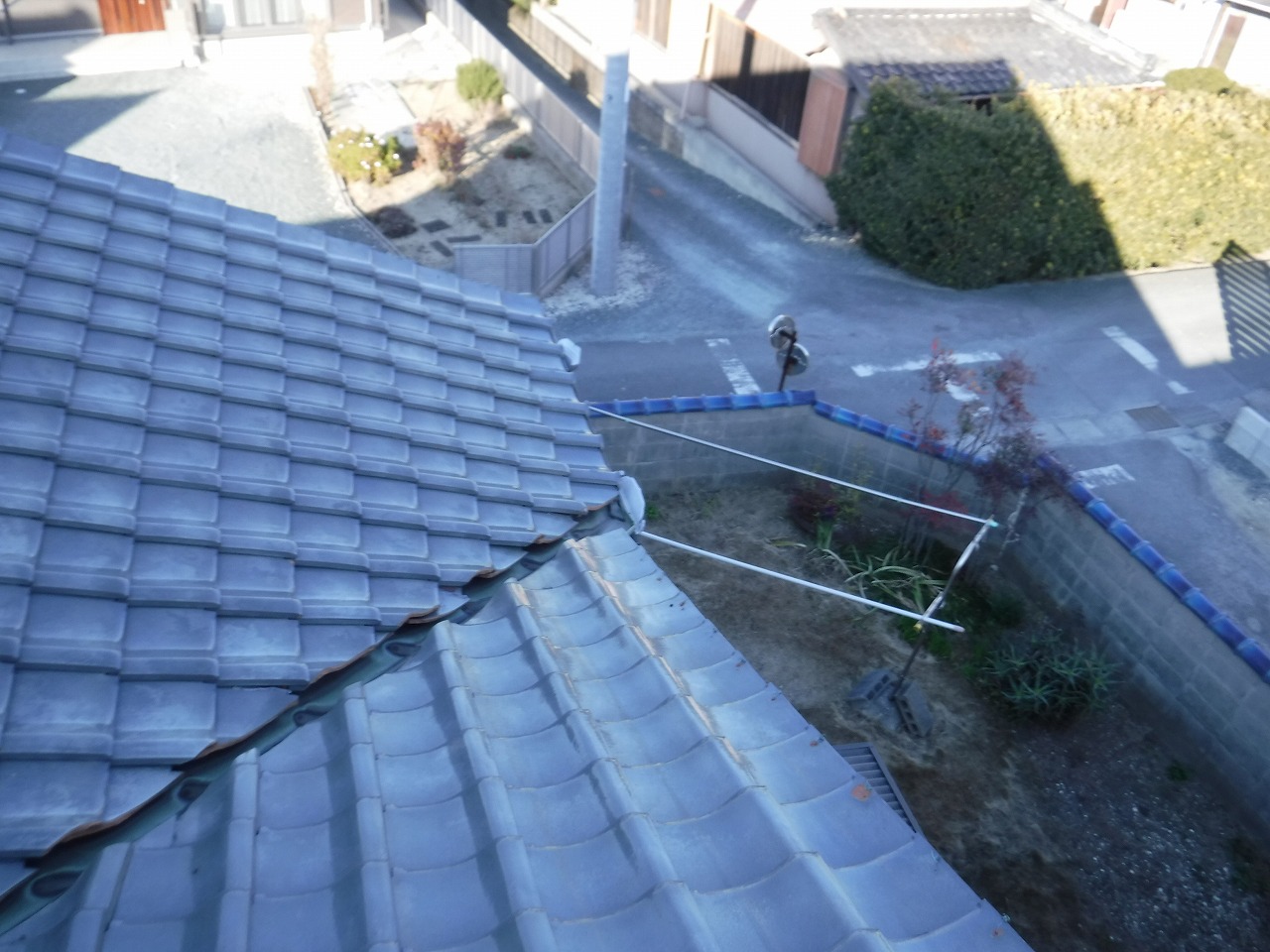 瓦を戻し必要な箇所は既設に合わせて漆喰等で塗り固めて行きます